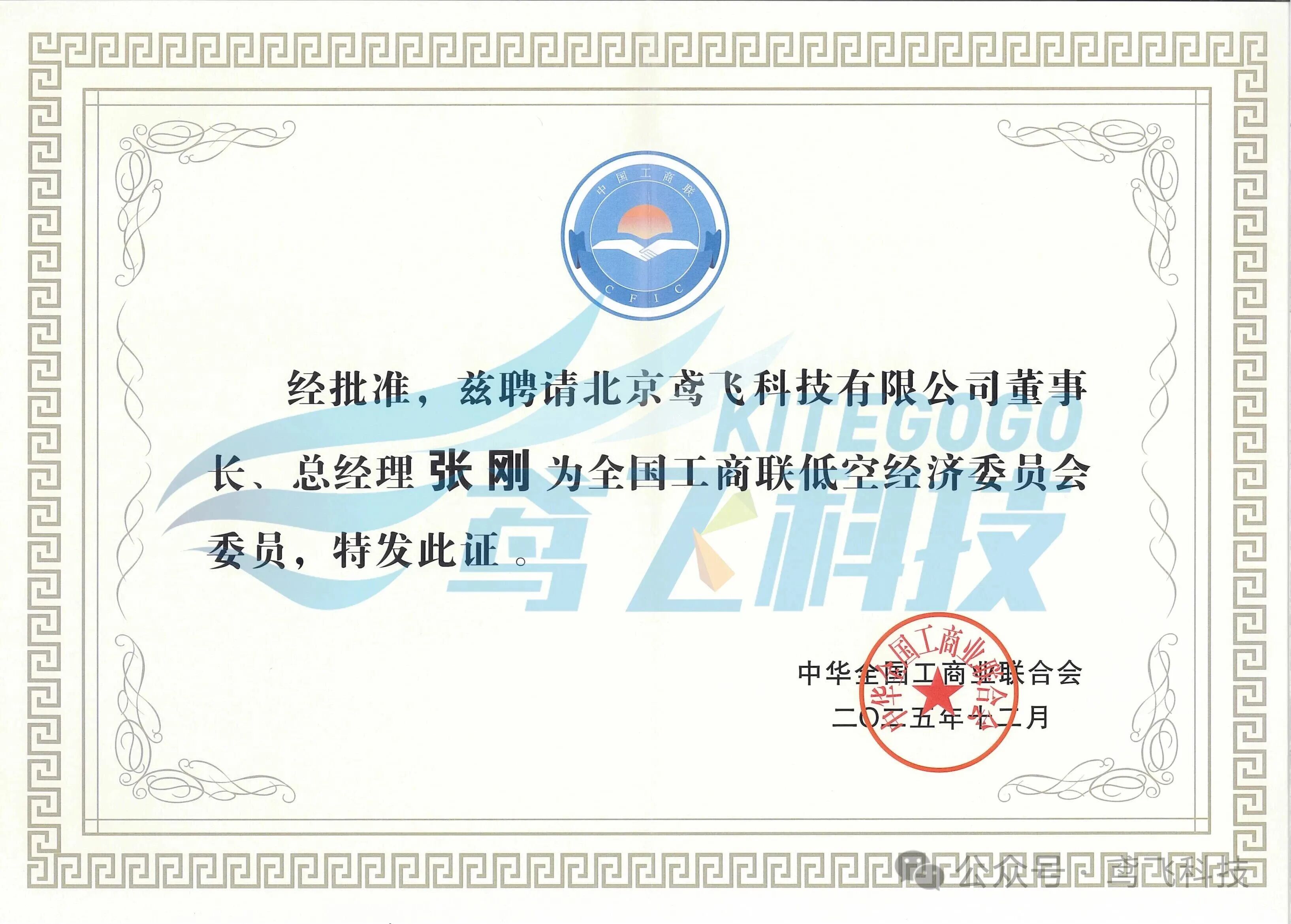 會(huì)上宣讀了《關(guān)于成立全國工商聯(lián)低空經(jīng)濟(jì)委員會(huì)的決定》,眾合科技參股企業(yè)——北京鳶飛科技有限公司董事長張剛被聘請(qǐng)為全國工商聯(lián)低空經(jīng)濟(jì)委員會(huì)委員,并頒發(fā)了委員證書。